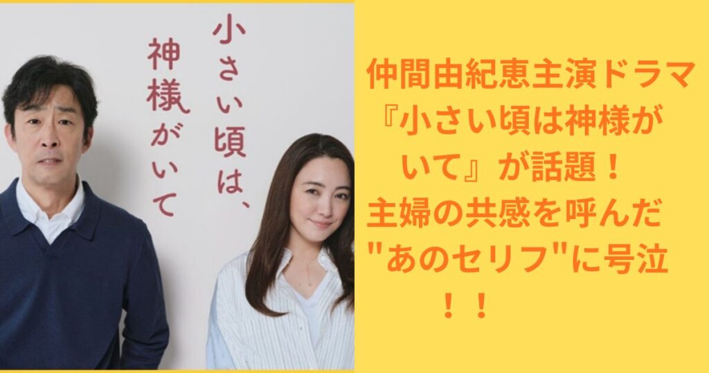 仲間由紀恵さん主演の新ドラマ『小さい頃は神様がいて』(フジテレビ/2025年10月9日スタート・毎週木曜日22:00から放送)が、放送直後からSNSで「心が痛い」「共感しかない」と話題になっています。 私も同じ主婦としてこのドラマを見て、主人公の言葉に... -